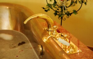 The classic Cleopatra bath in our exclusive bronze, free-standing “imperial” tub, with nourishing goat’s milk cream bath for silky smooth skin